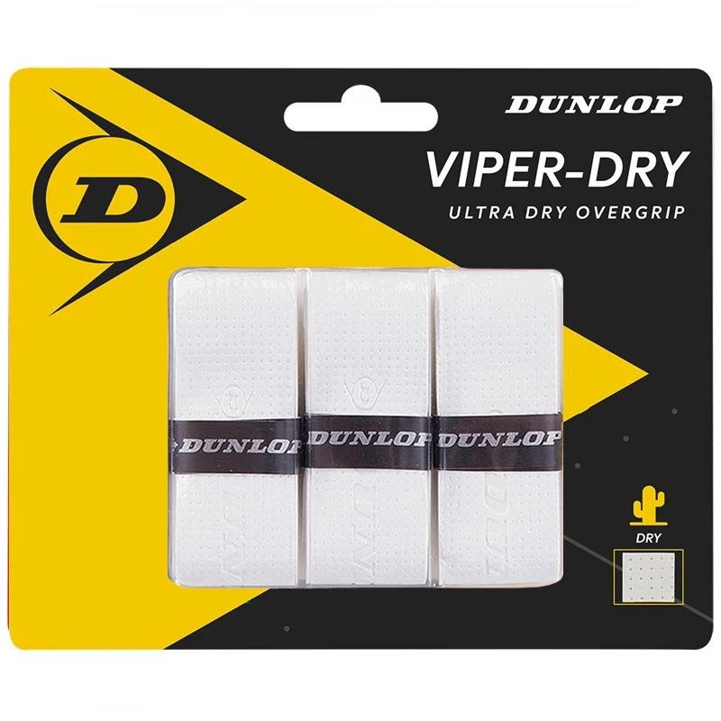 With amazing tack thenbspDunlop Viperdry Overgripnbspdelivers an ultra dry feel with a textured surfacenbspThis pack which brings 3 overgrips is perfect for players who play almost daily and are looking for an overgrip that will provide a great feel and comfort under any circumstanceProduct DetailsUltra dry replacement grip inspired by the Sand ViperPerforated PU construction wicks away moistureEnhanced control feel comfort and precision