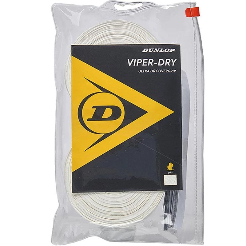 With amazing tack thenbspDunlop ViperDry Overgrip 30 Packnbspdelivers an ultra dry feel with a textured surfacenbspThis pack which brings 30 overgrips is perfect for players who play almost daily and are looking for an overgrip that will provide a great feel and comfort under any circumstanceProduct DetailsUltra dry replacement grip inspired by the Sand ViperPerforated PU construction wicks away moistureEnhanced control feel comfort and precision