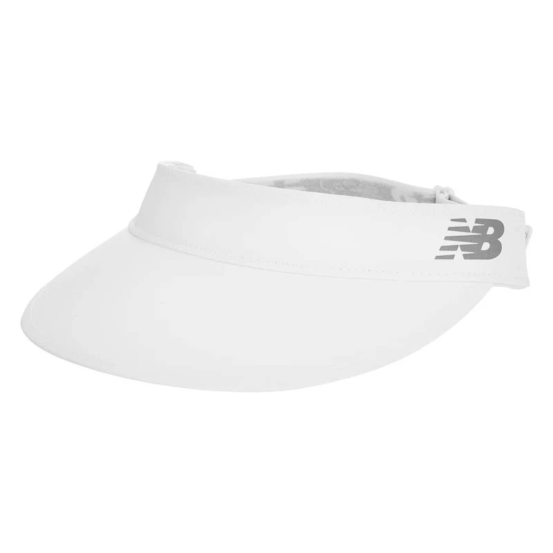 This New Balance Performance Print Visor is a stylish lightweight to shade your face on court It features an adjustable elastic back strap preshaped brim absorbent headband and a reflective NB logo