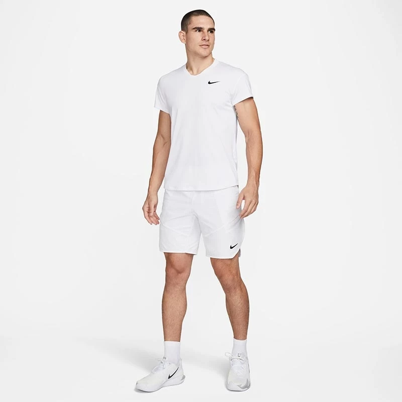 ADVANTAGE YOUExperience nextlevel performance in the NikeCourt DriFIT Advantage Shorts Not only are they made from incredibly stretchy fabric but they have elongated overlapping hem vents that are designed to give you ultimate sidetoside mobilitymdashexactly what you need on the courtNike DriFIT technology moves sweat away from your skin for quicker evaporation helping you stay dry and comfortableVery stretchy woven fabric is made with at least 75 recycled polyester fibersSlightly angled pleats at the bottom of each pocket expand to let tennis balls drop into your pocket with easemdashand sit securely while you run the courtElastic waistband with an internal drawcord lets you adjust your fit The waistband is lined with mesh to increase ventilation in this highheat areaMore DetailsStandard fit for a relaxed easy feel9quot inseam in a men39s size medium