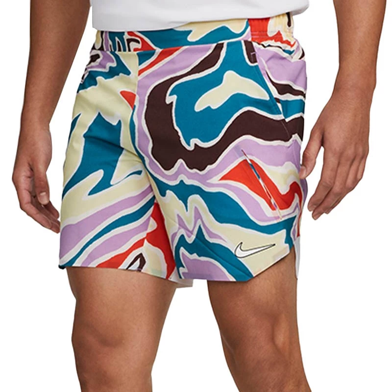 NikeCourt DriFIT SlamMen39s Tennis ShortsStep onto the court ready to go the distance in our sweatwicking NikeCourt Shorts They39re light and stretchy so you have some give as you run sidetoside We added a loose mesh back panel for a slimmer fit that won39t bunch Plus we have a pocket that keeps your tennis ball secure so it won39t unexpectedly fall out in the middle of a matchNike DriFIT technology moves sweat away from your skin for quicker evaporation helping you stay dry and comfortableLightweight woven fabric is stretchy so you can get the most out of your movement on the courtAn internal mesh layer connects to a back panel at the hem for a better fit that also helps you move freelySlanted Bemisbonded pocket helps keep your ball secure so it won39t fall out in the middle of playThe allover graphic is inspired by Australia39s terrain in honor of one of tennis39s biggest tournamentsMore Details86 polyester14 spandexMachine washImported