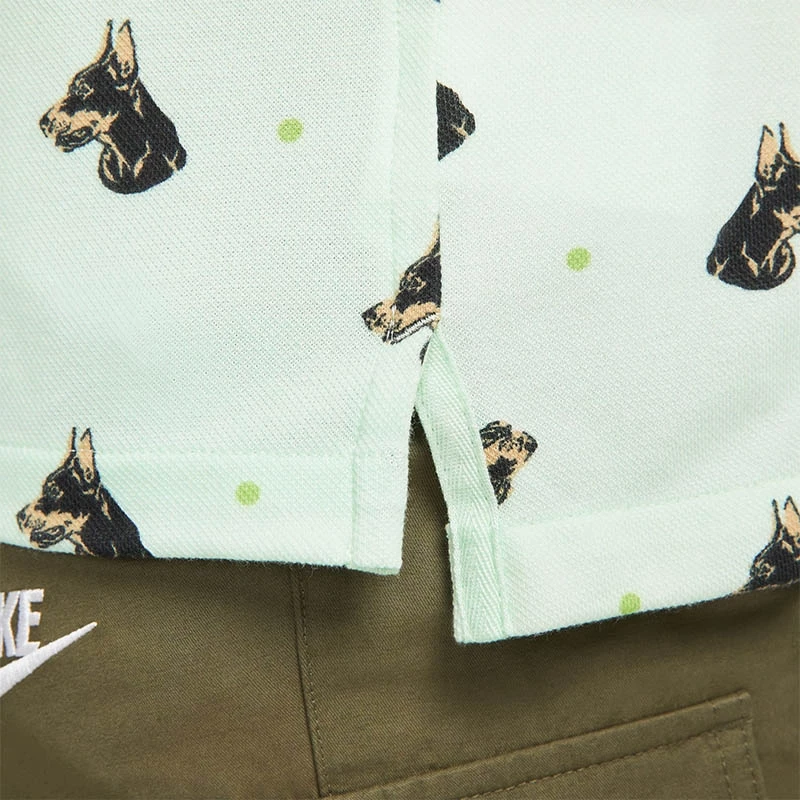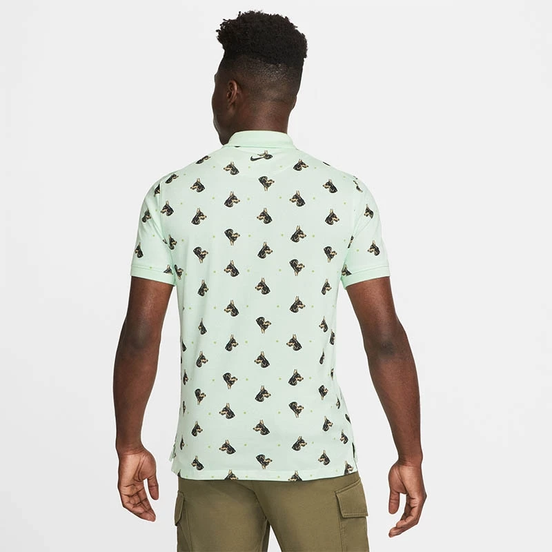Men39s Print SlimFit PoloThis isnrsquot your average polomdashitrsquos The Nike Polo Every detail from its innovative sweatwicking fabric to the hints of orange that nod to Nikersquos original shoebox has been thoughtfully crafted to meet the needs of the everyday you The result is a streetready style that looks at home on the course the court and everywhere else We added a fetch print with an eager dog waiting for a tennis ball to be thrownPremium details from the fabric to the breathable design create streetready style thatrsquos also built for the course or courtBreathable knit fabric with DriFIT technology helps you stay dry and comfortable in warm weatherAn orange label on the placket orange thread on the top button and Swoosh logo under the back collar infuse your look with heritage styleLonger back hem and side vents let you wear the polo untucked for a more casual lookEmbroidered eyelets at each underarm enhance airflowMore DetailsSlim fit for a tailored feelRibbed collar and cuffsHem vents2button placket59 cotton41 polyesterMachine wash