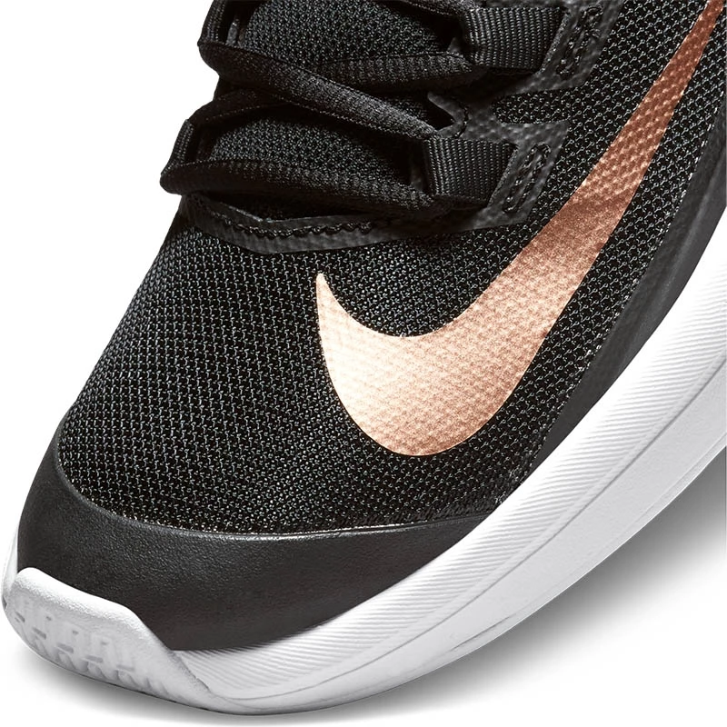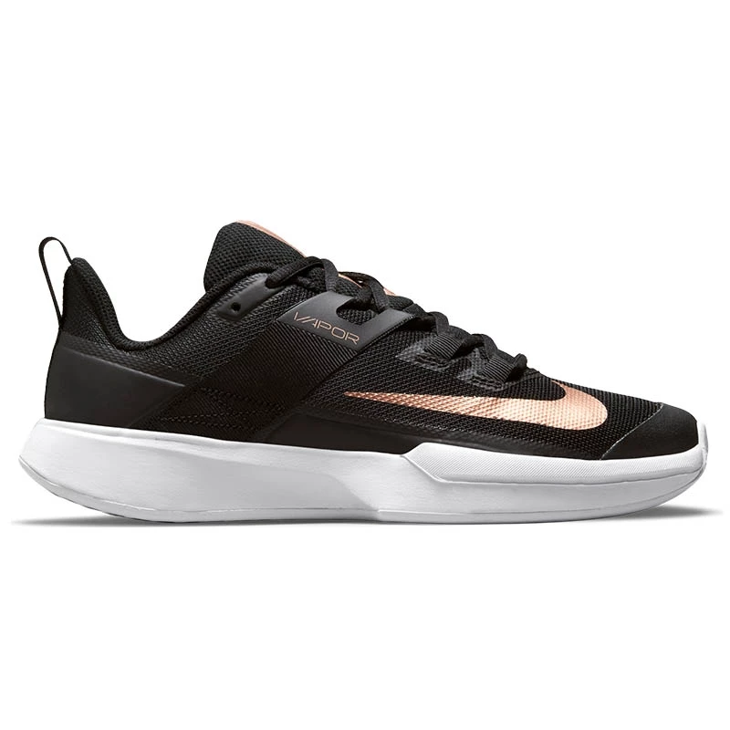 Nike Vapor Lite HC Women39s Tennis ShoeINSPIRED BY THE TRACK BUILT FOR THE COURTLike a race car the NikeCourt Vapor Lite keeps most of its features under the hood Its unique cushioning system is built to help you get to the ball as fast as you can An innovative 4point strap takes learnings from race car harnesses to help keep your foot locked in during your fiercest matchesmdashall in a lightweight breathable design that39s incredibly comfortableLightweight ContainmentWith a 4point design that39s inspired by a race car harness a supportive strap wraps your foot from bottom to top Ghillie loops on the bottom 2 laces hug your foot for extra supportBreathable and DurableExtra durable mesh breathes to help keep your feet cool A molded rubber overlay on the medial side helps prevent wear from toe dragBuilt to BankSoft foam is placed near your arch so it39s easier to align your ankle with your foot while banking Harder foam along the outside of your foot helps you push off during fast movements so you can get to the ball as fast as possibleMore DetailsDesigned for wear on hard court surfacesRemovable insole