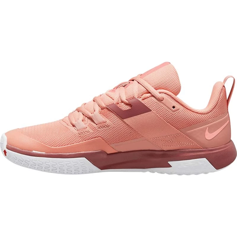 INSPIRED BY THE TRACK BUILT FOR THE COURTLike a race car the NikeCourt Vapor Lite keeps most of its features under the hood Its unique cushioning system is built to help you get to the ball as fast as you can An innovative 4point strap takes learnings from race car harnesses to help keep your foot locked in during your fiercest matchesmdashall in a lightweight breathable design that39s incredibly comfortableLightweight ContainmentWith a 4point design that39s inspired by a race car harness a supportive strap wraps your foot from bottom to top Ghillie loops on the bottom 2 laces hug your foot for extra supportBreathable and DurableExtra durable mesh breathes to help keep your feet cool A molded rubber overlay on the medial side helps prevent wear from toe dragBuilt to BankSoft foam is placed near your arch so it39s easier to align your ankle with your foot while banking Harder foam along the outside of your foot helps you push off during fast movements whether you39re playing tennis or pickleballMore DetailsDesigned for wear on hard court surfacesRemovable insole