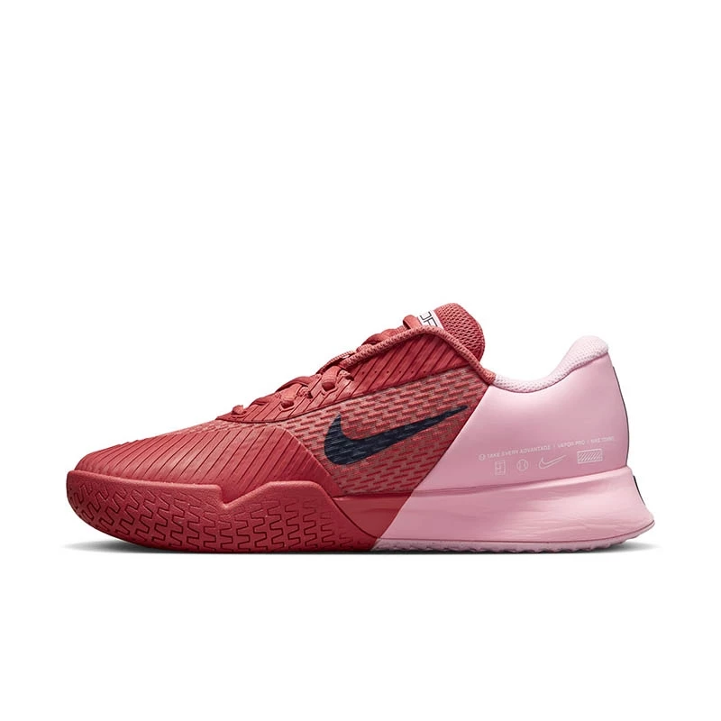 Nike Zoom Vapor Pro 2 HCWomen39s Hard Court Tennis ShoesFor the rally that wonrsquot relent or the marathon 5set match that must end in your favor go with the Vapor Pro 2 We brought back all the elements you enjoyed in the original Pro the lowtotheground design and the springy Zoom that helps you break from baseline to baseline with that familiar Vapor comfort that helps keep you fresh on unforgiving surfacesLow Cut for High SpeedsThis design is lower to the court giving you incredible lightweight court feel for bursts of quick movementsSpring into ActionA forefoot Zoom Air unit offers spring in your 1st step helping you get to that forehand winner along the baseline or approach the net with suddenness The cushy midsole offers support without adding unnecessary weightLightweight Breathable and DurableDurable mesh helps keep your feet cool The inside of the mesh is reinforced where you need extra support The outside has a thin flexible overlay for extra durabilityStretchy internal sleeve hugs your foot for a socklike fitThe herringbone outsole uses a datainformed design to create grip without impacting your ability to slideRubber is removed in lowwear areas to help keep weight at a minimumFulllength foot frame on the outside of the shoe helps stabilize your foot during quick cutsMore DetailsDesigned for hard court surfacesMesh collar